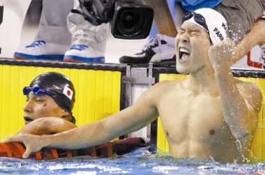 ????The Beijing Olympics 400 freestyle champion shouted and punched his left fist in the air in celebration after shaving 0.05 seconds off his own Asian record of 1 minute and 44.85 seconds yesterday. Park has been trying to find form again after failing to qualify for the 400 final at the world championships in Rome last year.