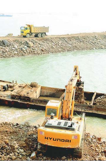 THE main channels and piers of Dongjiakou Harbor are almost complete. There are 19 projects with total investment of 70 billion yuan, including nine invested by top international and State-owned companies. There are four berths which have started trial operation and a new round of construction will be started soon. ?(Wang Yuanyuan, Fu Xuejun) |