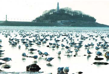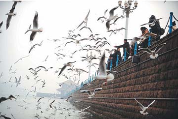 ???  QINGDAO has become home to 100,000 seagulls of 15 varieties. There were only two varieties 18 years ago. ????There are four places in the city with heavy seagull population: the coastal areas in Zhanqiao, Badaguan, the west side of Aomen Road and the Olympic Sailing Center. ????Residents, especially women and children, congregate at Zhanqiao to feed the seagulls.  ????In Badaguan, seagulls rest on the reefs after searching for food in the sea, making the area popular with bird watchers. ????Seagulls fly over the sailing boats at the Olympic Sailing Center, triggering cheers from visitors.  ????A photographer named Liu gets up early each morning to take pictures of the birds on the west side of Aomen Road. ????In 1994, Qingdao became China’s first city to put forages into the sea to attract more seagulls. ????(Li Hao, Zhang Yixin) |