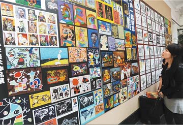??? The city’s 22nd art festival for primary and middle school students has opened at Qingdao Art Gallery. Students modeled their drawings on styles and works by masters such as Qi Baishi, Xu Beihong and Van Gogh.Li Hao
