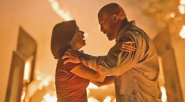 If you think you can keep “The Rock” out of a flaming skyscraper while his wife and kids are inside, you’re welcome to try. But do yourself a favor and make sure there aren’t any giant construction cranes nearby. In the first of many guffaw-worthy daredevil sequences, Sawyer scales a crane’s exterior, uses its hook to smash a hole in an upper floor of the Pearl and takes a running leap from the crane into that hole.