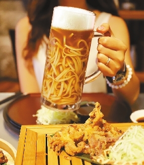COME and try the new recommended “beer” noodles created by chef Kelly at Shizuku Japanese Restaurant at JW Marriott Hotel Shenzhen starting now. A good afternoon starts with a large draft beer mug filled with delicious soup and stunning chilled udon, plus a Japanese style snack. There are three types of noodles for you to choose from: “black beer,” or chilled udon with cold soup, “ice beer,” or green tea chilled noodles with cold soup, and “white beer,” or ramen with hot or cold soup. In addition, an assorted tempura platter, deep fried chicken with cucumber tata sauce, deep fried squid, deep fried fish sticks with vegetable sauce and Chikuzenni are really satisfying picks this season as the weather gets cooler and we’re in the mood for something to warm us up. A draft “beer” and a snack cost only 98 yuan (US$14.2). Enjoying this special “beer” set and share cheers with your friends! Venue: Shizuku Japanese Restaurant, 2/F, JW Marriott Hotel Shenzhen Time: 11:30 a.m.-2:30 p.m. Reservation: (0755)2269-8250(SD News) |