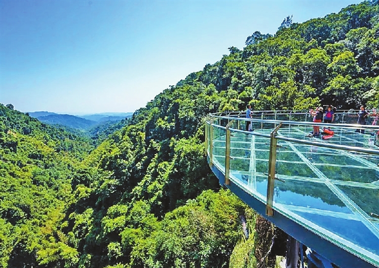 A VIDEO about a cliff swing in Chongqing went viral recently on Douyin, a social media app for creating and sharing videos as well as live broadcasting. For those who have always planned to try the cliff swing but still haven’t had time to travel all the way to Chongqing, here comes some good news. The first suspended glass skywalk project, nicknamed “Tianzi Flying Dragon,” opened in Qingyuan, Guangdong, on Nov. 2. Additionally, various challenging projects, including a cliff swing with a view of a waterfall, also await. The “Tianzi Flying Dragon” is a new project at the Tianzi Mountain Scenic Area. It’s built on top of Juebi Peak above Tianhou Waterfall and boasts an altitude of 399 meters. The skywalk is 1.8 meters wide and 399 meters long. It utilizes three layers of durable and ultra clear glass, making the walk super safe while guaranteeing a thrilling view. While walking down the corridor, flanked by the lush forest on both sides, your heartbeat can’t help but accelerate. Upon exiting the dragon body, you will find yourself on the largest glass cliff observation deck in Guangdong with a view of a waterfall and old-growth forest. Sometimes the observation deck, which covers 600 square meters, serves as a romantic site where courtship is highly successful. Asia’s No. 1 waterfall swing If you like the feeling of flying and want to scream out in the sky, you should definitely try out the cliff waterfall swing. When you sit on the swing, the electromagnetic control will pull you up into the air and then swing you out from the cliff at a 170-degree angle. Forest Rainbow Slide If you want to go downhill in the fastest way, use the Forest Rainbow Slide to slide down the hill. There are three slides in total, and two of them feature a mountain view. There are eight acceleration curves and it takes only nine minutes to reach the foot of the mountain. You may feel scared and back off when you hear the screaming in the forest. But, it’s totally worth a try. Tianhou Waterfall The Tianhou Waterfall is already quite well-known. The spectacular fall drops 128 meters. The clear water flows like a soft white ribbon against the green background of the lush forest. Walk through the valley and stand beside the handrail in front of the waterfall and you will feel the freshness of the mountain and smell the fragrance of the trees. Bamboo sea Tianzi Mountain is home to a lush bamboo sea. Walk into the bamboo forest and you will feel like you’re entering a scene from the movie “Crouching Tiger, Hidden Dragon.” Surrounded by the green bamboo, the gurgling brook and fresh air, you will feel relaxed and tranquil. Seven-Color Garden This garden features different varieties of blooming flowers. With a lake view, flower sea, green mountain and other delights of nature, you will feel like you walk into a wonderland. Guesthouse in the forest After spending a full day experiencing all of these fun things, you can stay at the guesthouse on the mountain. The two guesthouses, namely Xingkong Guesthouse and Yueguang Baohe Guesthouse, are both good choices. Add: Feilaixia Town, Qingcheng District, Qingyuan (清遠市清城區飛來峽鎮天子山風景區) (Chen Xiaochun) |