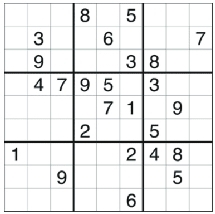 Game rules: Every column, row and box (3×3 marked by heavier lines) must contain all the digits from 1 to 9.