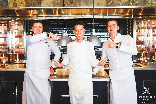 LABREZZA, the Italian restaurant at The St. Regis Zhuhai, has invited René Mathieu, chef de cuisine of the restaurants of Chateau de Bourglinster (awarded with one Michelin star since 1988), to jointly offer an exquisite feast to local diners through Saturday. Famed for vegetal cooking, Mathieu partners with Michele Tenzone, LaBrezza’s Italian chef, and presents a “Star Hunting Feast Dinner” featuring a variety of vegetables and herbs paired with seafood and meats. The multi-course dinner starts with several colorful and tasty snacks, for example sweet potato crisps; refreshing kefir made from celery, verbena and apple; and culinary delights from Puglia. Then come the starters, including scallops, Italian ravioli and risotto. The main courses include the cod fish and the roasted beef, followed by a dessert tantalizing to both the eyes and the taste buds. All dishes see the perfect pairing of vegetables with seafood or meats, which are rich in varieties and colors and are both delicious and healthy. A gastronome, poet, herbalist and lover of vegetables, Mathieu began his career in 1986 at Le Capucin Gourmand Restaurant in Belgium where he obtained his first Michelin star. Since 2005, he is the executive chef of the restaurants at Chateau de Bourglinster. He was named Chef of the Year in 2010 and received the Gault & Millau 18/20 rating. Tenzone was born in Bari, a city bathed by the sea of the Puglia region in the southeast of Italy. He cooks with the fundamental principle that the respectful use of high-quality raw materials makes the difference.(Tang Li) |