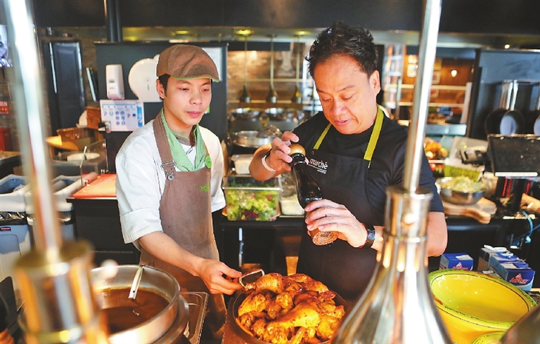 Wang Jingli wangjingli0715@163.com TONY LEONG is the general manager of Marche Movenpick, a Swiss brand restaurant located at the UpperHills shopping mall in Futian District. However, if you run into him at the restaurant, you might mistake him for a server. Just when the interview was about to start, two guests, who seemed to be repeat customers, walked into the restaurant. Leong greeted them with a smile and welcomed them to the restaurant. He told the Shenzhen Daily that he wants to be friends with his customers and a mentor for his staff. Born and raised in Singapore, Leong started working at a hotel while studying at the age of 16, and he learned to cook by the age of 20. He has been stationed in different parts of the world, including the U.S., Indonesia, Malaysia and Hong Kong, to open restaurants for his previous franchises. In 2018, he was dispatched to Shenzhen to prepare the first Marche Movenpick restaurant in China. “The reason that we chose Shenzhen for the Marche Movenpick flagship store is because we believe in the city’s potential. As you can see, Shenzhen has been gaining a lot of steam over the past decades, growing from a fishing village to one of China’s most successful and powerful cities in terms of its economic achievements,” said Leong, adding that, “I personally also like Shenzhen very much. Although Shenzhen, like many other metropolises such as Shanghai and Singapore, has a very fast-paced lifestyle, it offers places like green parks for people to slow down and relax. So I really appreciate the city’s green environment.” Movenpick is a Swiss group of companies with a global presence in areas like Europe, Asia and North America. Marche Movenpick is one of their businesses, featuring a genuine marketplace atmosphere where customers can stroll between market stands and choose European-style dishes, such as the finest meat from the grill, freshly caught seafood, homemade pizza, pasta and Belgian waffles and Movenpick ice cream, as well as a selection of fresh juices, refreshing beers, coffees and wines. “Gone are the days when customers want to just sit and order. Thus, we hope customers can not only enjoy the food but also the whole dining experience. We want them to have more interactions, either with cooks or with servers. This is what we aim to offer,” Leong said when asked about the idea behind the market atmosphere. In other words, customers are encouraged to see, smell, touch and taste at Marche Movenpick. Everyone can enjoy the smells and the sizzle as the dishes are prepared before their eyes, according to Leong. “The name, Movenpick, was inspired by seagulls when the founder, Ueli Prager, observed them swooping in for food over Lake Zurich. Based on the German word, Mowe, for seagull, Movenpick literally means ‘picking seagull.’ While the other part of the name, Marche, is the French word for market. That’s how we came up with the idea to let our customers pick their own food from ‘live kitchen stands,’” said Leong. Apart from enhancing the dining experience, the design also allows customers to order customized food by directly telling the cooks, who are standing in front of each stand, their special preferences. All of the ingredients piled up in front of each stand are real, not only for decoration. “We want to ensure for our customers that everything we prepare is the freshest. Some customers even told me that their kids who had not been used to eating vegetables were willing to eat them after seeing and touching the vegetables we put there,” said Leong. As a manager, Leong believes that it is imperative to give guests a specific reason to come to your restaurant. “Don’t try to be everything to everyone or you might end up being nothing to no one.” For this reason, Leong has a very clear idea about what they want to offer to customers and he also wants the staff at the restaurant to help deliver on their concept. Asked about the biggest requirement for staff, Leong prioritizes attitude and said, “As a partner, I can help staff develop their skills but attitude is something they need to have all on their own. An employee’s attitude does affect the way they treat customers, and a good attitude ensures a happy and loyal customer base, resulting in more business and higher spending from customers.” Leong’s schedule is extremely busy. A typical working day starts for him at 6 a.m., when he helps the store get ready for the day of operation, and ends at 10 p.m. when the store closes. This might sound crazy to some people. However, you can easily sense his great passion for the job. It might be true that every successful business man can balance their life and work. For Leong, it seems more like his work is also his life and vice versa. He said that he is comfortable with putting his job first, even if this means that he has to make sure he has Internet access and — if necessary — a way to be in the office 365 days a year, regardless of whether he is off or traveling. “I am also lucky to have a close friend to share goals and ideas, and this exchange always brings inspiration for my work. I believe that the best inspiration comes from the application of ideas, not the consumption of them,” Leong added. While discussing the future plan for the restaurant, Leong told the Daily that he hopes they can have more Marche Movenpick restaurants throughout China in different parts of the cities. “This is our first flagship store in China and we are educating our guests on our unique concept. As a successful operator overseas, but first in China, we are always trying different ways to blend into the local market in order to give a more comprehensive experience for our guests.” Leong’s life motto is that People who are truly strong lift others up and people who are truly powerful bring others together. If you still remember what he said about the role that he wants to play for his staff, you will understand