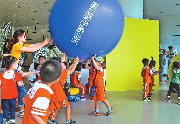 Children have fun at a parent-child design exhibition at Shenzhen Nanshan Museum yesterday. There are 21 designers’ works exhibited.