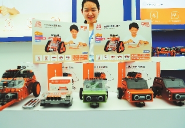 A company exhibits educational programming robots at the fifth Shenzhen International Maker Week from June 13 to 19. The robots are designed to be teaching aids.