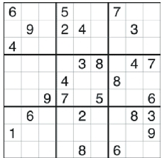 Game rules: Every column, row and box (3×3 marked by heavier lines) must contain all the digits from 1 to 9.
