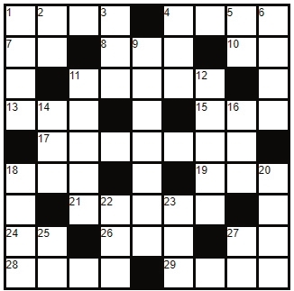 Across 1. Floating platform 4. Damage 7. Short for Edward 8. Frozen water 10. To perform a task 11. Average Joe ____ 13. Homer Simpson’s expression 15. Forbid 17. It keeps food icy 18. Had eaten 19. Pig’s home 21. Interlace 24. Santa laugh 26. Twas ___ Night Before Christmas 27. Rural route (abbr.) 28. Ariel’s human love 29. Armored military vehicle Down 1. You do this with a book 2. Advertisement 3. ___-Tac-Toe 4. Stitch an edge 5. Road 6. Groan 9. Swift wildcat 11. Animal like mouse 12. Extremely overweight 14. Often 16. Sculpture or painting 18. Throbbing pain 20. State: New ____ 22. Et cetera 23. Animal doctor 25. Otherwise 27. Registered nurse |