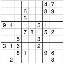 Game rules: Every column, row and box (3×3 marked by heavier lines) must contain all the digits from 1 to 9.