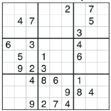 Game rules: Every column, row and box (3×3 marked by heavier lines) must contain all the digits from 1 to 9.
