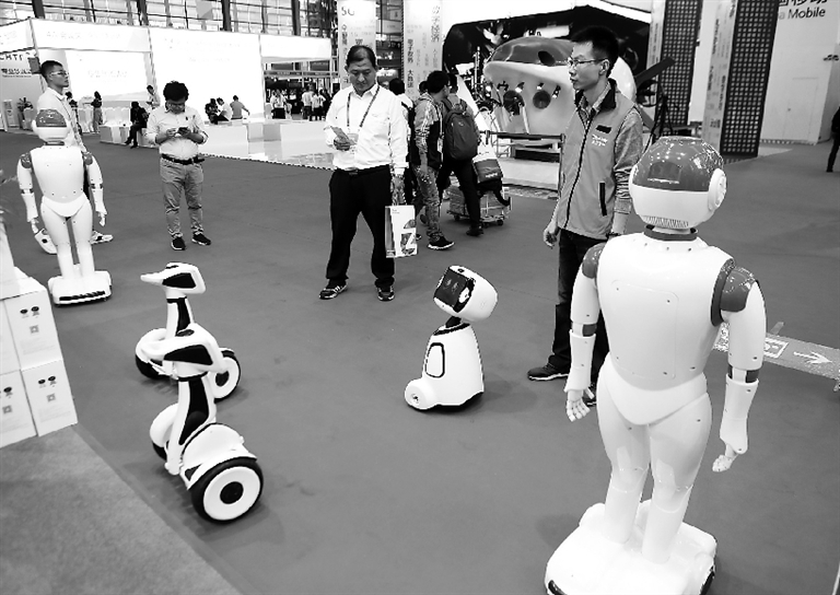 Visitors to the China Hi-Tech Fair appreciate robots developed by a Shenzhen-based company at the Shenzhen Convention and Exhibition Center yesterday. Sun Yuchen