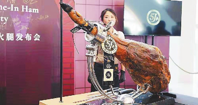 FROM now on, foodies in Shenzhen will have full access to taste Ibérico bone-in ham, a specialty from Spain which can be found in every kitchen and restaurant throughout the country. Shenzhen Jiarui Food Co. has joined hands with the Obsidian Bar and Cinco Jotas (5J) brands to officially introduce the ham brand to South China at a launching ceremony Nov. 28 on the sixth floor of the Ping An Finance Center. “South China could not be reputed as ‘a heaven for foodies’ without the availability of Ibérico bone-in ham. We’re very proud to be the first company to introduce the Ibérico bone-in ham to Shenzhen,” said Zhao Bin, general manager of Shenzhen Jiarui Food Co., which is specialized in the import and sale of high-end food materials. China and Spain signed the “China-Spain Pork Agreement” last November, lifting the ban that the Chinese mainland could only sell boneless ham. One of Spain’s finest brands of Ibérico hams, 5J bone-in ham was showcased at the 2019 Shanghai International Import Expo in November, marking the beginning of China importing Ibérico bone-in ham. Founded by Mr. Rafael Sánchez Romero in 1879, Cinco Jotas is located in Jabugo on the province of Andalusia in Spain. The hoof of an acorn-fed 100 percent Ibérico ham is black, hence the nickname “pata negra.” The purebred Ibérico pigs graze freely throughout the Dehesa woodlands and roam some 14 kilometers daily. (Yang Mei) |