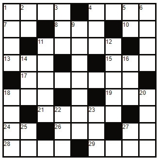 Across 1. Slide unexpectedly 4. Very old 7. Expression of gratitude 8. Mornings 10. Doctor 11. Alter to be suitable 13. Large passenger vehicle 15. Turning back of tide 17. U.S. space vehicle 18. Golf peg 19. Lower limb 21. Frightening 24. Registered nurse 26. Single number 27. A single one 28. ____ & Circumstance 29. Pull along on the ground Down 1. Bang your toe 2. Note after so 3. Slang for apartment 4. Type of snake 5. Short for Edward 6. Plain and boring 9. Alien from Mars 11. Remnants of fire 12. British television 14. Utilize 16. Honey maker 18. Protective covering 20. Large round percussion instrument 22. Policeman (slang) 23. Color of blood 25. Negative response 27. Battery size |
