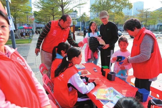 Volunteers of E station at Shenzhen Book City, CBC Store demonstrate Garbage classification.