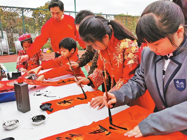 Yang Mei, Wheaty Cai yangmei_szdaily@163.com Shenwai Longgang International School (SLIS) was immersed in a festive atmosphere the morning of January 17 as students, teachers and parents dressed in red celebrated the Chinese New Year with a variety of traditional Chinese cultural activities such as flower-arranging, paper-cutting and clay figurine-making. At the auspicious occasion, Ms. Luka Liu, school director of SLIS, announced that SLIS is now formally accredited as an International Baccalaureate (IB) World School offering a Primary Years Program, making SLIS the first and only school in Longgang District to earn the honor. According to the principal, it only took SLIS two years of effort to win the recognition, a feat that is deemed as remarkable since it normally takes three to five years to obtain authorization from IB. Ms. Liu also announced that SLIS’s Grade 1 will add three additional classes with 20 students per class. The secondary school division has officially started enrollment with Grade 6 and 7 opening two classes with 20 students per class, thus forming a comprehensive system covering primary and secondary school education. According to the school, SLIS is also currently applying for authorization in the IB Middle Years Program (MYP) for grades 6 to 10. Additionally, Liu also revealed that SLIS’ permanent campus is now under construction and will be put into use in September. The well-equipped school buildings will be designed in a European style and will accommodate up to 900 students. SLIS has been committed to providing international curriculum education with Chinese characteristics as it attaches equal importance to Chinese and Western values and cultures in its educational philosophy. Entering its second edition, the Chinese New Year fair is a part of a series of activities for Traditional Chinese Culture Week at SLIS, aiming to give students the chance to experience the charm of traditional Chinese culture and encouraging them to carry it forward. This year’s edition opened with students singing household Chinese song “A Grateful Heart” to express their gratitude to parents and teachers for their dedicated work and efforts, which was followed by an array of traditional cultural performances including pipa performances, Peking opera, martial arts and dragon dance. After the performances, audience members were invited to visit the Chinese New Year fair where they could try their hand at handicrafts such as paper-cutting, flower-arranging and sugar painting as well as sample traditional Chinese foods such as dumplings. |