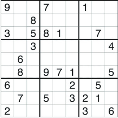 Game rules: Every column, row and box (3×3 marked by heavier lines) must contain all the digits from 1 to 9.