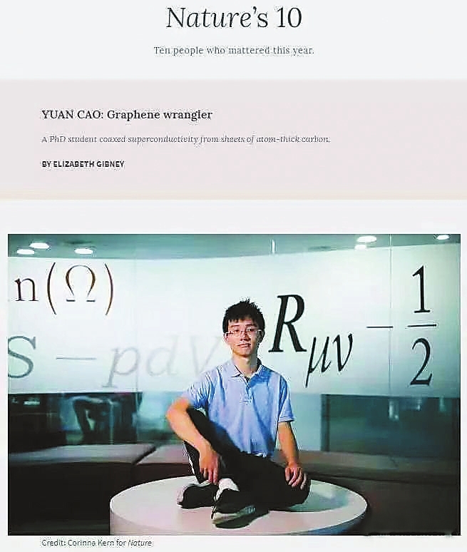 On May 6, Cao Yuan, a 24-year-old Shenzhen-born Ph.D. student in physics at the Massachusetts Institute of Technology (MIT), published in the journal Nature two papers on the latest breakthroughs made in the research of magic-angle grapheme . The first paper, with Cao as the first co-author, elaborated on an experimental attempt MIT researchers rolled out in controlling the twist of a magic-angle grapheme and introduced the structure to a wider range of two-dimensional research. The study has proved that the magic-angle grapheme structure can affect the interactions between electrons to achieve similarities in physical behaviors and has implemented a new grapheme structure in research for the first time, namely, the small-angle twisted bilayer-bilayer grapheme (TBBG). Cao was the first author and the joint corresponding author of the second paper. The researchers mapped the layout of the twisting angle of the grapheme structure. Through use of a nanoscale on-tip scanning superconducting quantum interference device (SQUID-on-tip), they obtained tomographic images of the Quantum Hall State at the Landau levels, and mapped the partial variations in hexagonal boron nitride (hBN)-encapsulated magic angle twisted bilayer grapheme (MATBG) devices with a relative precision better than 0.002 degrees and a spatial resolution of a few moiré periods. Cao detailed in the two papers published on March 5, 2018 in Nature with himself as the first authors that while stacking two layers of grapheme that are twisted relative to each other by a small angle of 1.1 degree, an unconventional superconducting reaction might occur, which marked the breaking discovery of the magic-angle grapheme. He kept updating his findings in leading journals such as Nature and Science, and was rated by Nature in 2018 as one of the top 10 influencial scientists in 2018. A physics prodigy born in 1995, Cao studied at Shenzhen Yaohua Experimental School in 2007 and finished all the curricula from Grade Six of primary school to high school in only three years. By 18, he had completed an undergraduate degree at the University of Science and Technology of China (USTC) in Hefei, Anhui Province and is now enrolled as a doctoral candidate at MIT. Cao had already shown his flair for physics in middle school, according to headmaster of Yaohua Experimental School. He had set up a well-equipped laboratory at home and was recruited in a special class together with other two students at the school. (Wang Haolan) |