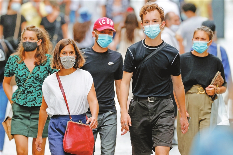 People wearing protective masks walk in the Montorgueil street in Paris, France, on Saturday. The global death toll from the coronavirus surpassed 800,000 on Saturday, according to John Hopkins University data, with the United States, Brazil and India leading the rise in fatalities. Nearly 5,900 people are dying every 24 hours from COVID-19 on average, according to Reuters calculations based on data from the past two weeks that ended on Friday. That equates to 246 people per hour, or one person every 15 seconds.SD-Agencies