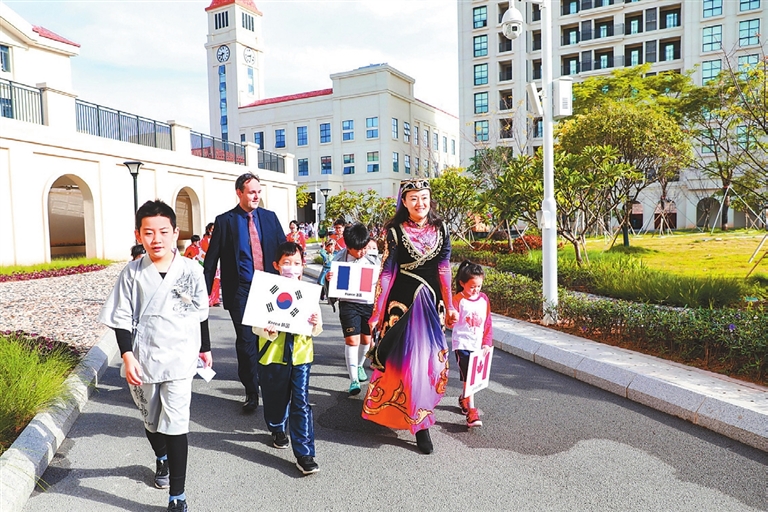 Yang Mei, Wheaty Cai yangmei_szdaily@163.com The campus of the Shenzhen Foreign Languages GBA Academy (SGA) in Longgang District on October 23 was permeated with a strong festive atmosphere with colorful flags fluttering and students and faculty members dressed in traditional costumes of different nationalities parading around the campus, in celebration of the United Nations Day which falls on October 24 every year and the Double Ninth Festival (also known as the senior citizens’ festival) which took place October 25 this year. Population aging is one of the global issues highlighted by the UN. As future global citizens, SGA students are being taught to uphold traditional Chinese virtues, embrace the diversity of world cultures and develop concerns for international issues. This year, they focused on the topic “Be a Global Citizen, Start With Respecting the Elderly” and exchanged views and ideas to raise people’s awareness of respecting the elderly. The day started with greetings from representatives of teachers and students from 17 countries speaking in different languages at the school gate, which was led by School Director Liu Jia. “The UN embodies the aspiration of over 7 billion people for a better life, and the UN Charter remains an important guarantee for world peace and development. However, on the 75th anniversary of the founding of the United Nations, the global issue of ‘a(chǎn)ging population’ is becoming increasingly prominent. The UN calls on all countries to actively respond. The Chinese nation has a fine tradition of respecting the elderly since ancient times. The Double Ninth Festival is also China’s Elders Day. As a student of the SGA, despite our limited ability at this time, we should care about our homeland and the world, starting from small things around us, respecting and loving the old. While understanding traditional culture and inheriting virtues, we should also establish a sense of global citizenship,” Liu said in her opening remarks. After the parade, the children wrote on cards their best wishes for the 75th anniversary of the United Nations, sowing the seeds of love and peace. In the afternoon, all the teachers and students gathered at the auditorium to participate in an assembly celebrating the theme “Be a Global Citizen, Start With Respecting the Elderly.” At the assembly, students shared their thoughts on the topic of properly looking after the elderly. Some delivered speeches and put forward suggestions on the aging issue; others chose to recite poems or chant, often showing their emotions. Some grandparents also shared their wonderful experiences and recalled their memories. They believed respecting for the old starts with small things such as listening to the elders’ voices and keeping them company, or even simply serving them a glass of water and helping them wash their feet. |