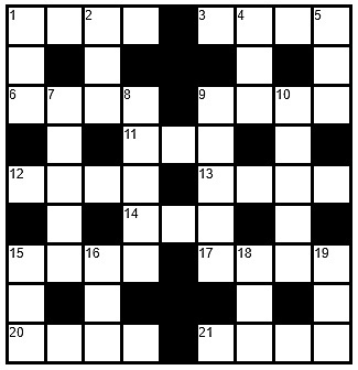Across 1. Horned and bearded animal 3. Cook by boiling slowly 6. Mathematics 9. An assistant 11. Not the beginning 12. Fur loving pest 13. Too 14. Tear 15. Do this to a fly 17. Hammer or wrench 20. Unwanted lawn growth 21. Not fast Down 1. Precious stone 2. Small insect 4. Prefix meaning 3 5. Grief, misery 7. Permit 8. It pumps blood 9. Alter to be suitable 10. 70’s style of music 15. Stitch with needle and thread 16. Number of years old 18. Hooting bird 19. Not high |