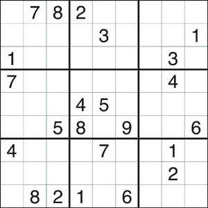 Game rules: Every column, row and box (3×3 marked by heavier lines) must contain all the digits from 1 to 9.