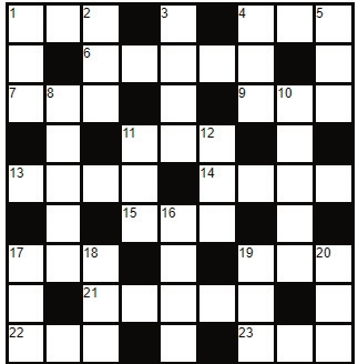 Across 1. Advertisements 4. Price for service 6. Absorbent cloth 7. Horses eat it 9. Not me; thee 11. Sight organ 13. Bridge; covering a distance 14. Not on time 15. Not bright 17. Yes, in a vote 19. Make a mistake 21. Rock 22. Past of meet 23. Allow Down 1. Residue of fire 2. Pig’s home 3. Move slowly back and forth 4. Take flight 5. Large flightless bird 8. Make request 10. A swift swimming mammal 11. Not the beginning 12. Type of tree 16. Thing to worship 17. Upper limb 18. Eastern Standard Time 19. Snake-like fish 20. Decay |