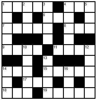 Across 1. Writes with keyboard 4. Sticky tree fluid 6. Type of snake 7. Sinks teeth into 8. Rightfully possess 9. To give advantage 11. Break in half 14. A hot drink 15. Step heavily 17. Duo 18. Round baked dessert 19. Diminish Down 1. Dining surface 2. Cook spaghetti in it 3. Band of fabric 4. Soup utensil 5. Shallow cooking vessel 10. To shred cheese 12. Sheet for writing 13. Yield 14. Faucet 16. Small insect |
