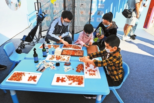 Children, guided by their parents, try to print out sentences with movable types at a printing workshop at Shenzhen Library on Sunday. The library organized events to promote traditional Chinese culture during the Shenzhen Reading Month. Movable type was first created by Bi Sheng (990-1051), who used baked clay. When movable type reached Europe in the 15th century, it revolutionized the communication of ideas. Sun Yuchen |