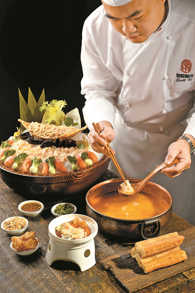 Tang Li 654030846@qq.com FAN Zeoi Mansion, a restaurant serving exquisite Shunde dishes, has recently opened at the CBD of Futian District. Based on the inheritance of the Shunde culinary tradition, the restaurant follows the concepts of healthy dining and makes constant innovations to satisfy the tastebuds of diners. Located on the fifth floor of the Shenzhen Wyndham Grand, Fan Zeoi Mansion covers an area of 2,000 square meters. It has a bright and spacious hall that can accommodate 160 guests, as well as 10 luxury business rooms of different sizes. Being the fourth Fan Zeoi branch in Shenzhen, the new restaurant is operated by Xu Guangqiang, who is from Shunde and has many years’ experience as an executive chef in five-star hotels. The other three Fan Zeoi outlets are located respectively in Futian, Luohu and Nanshan districts. To celebrate the official opening of Fan Zeoi Mansion, a grand banquet was held last weekend, for which chef Xu invited 11 other five-star chefs to present a 12-course dinner. The dishes’ diversified cooking styles showcased the chefs’ efforts in uplifting the boundaries of gastronomy. Signature dishes of Fan Zeoi Mansion include roasted crispy suckling pig, roasted chicken, a rich collection of river fish cooked in various styles, and popular Shunde desserts including the double-skinned steamed milk and the stir-fried fresh milk with egg whites. Shunde, being a part of Foshan in Guangdong Province, is one of UNESCO’s “World Gourmet Capital” cities. It is also known as the “cradle of the best Cantonese chefs.” Shunde cuisine is considered the essence of Cantonese cuisine and features rich ingredients and excellent cooking. |