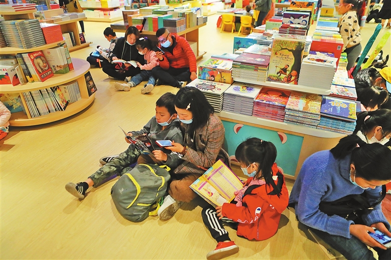 Children and their parents read at the Shenzhen Book City CBD Store in Futian District on Sunday.