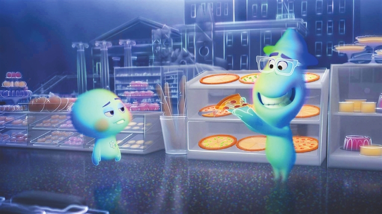 The film’s chronicle of daily life in New York boasts of a wealth of immersive detail. A world of street musicians, sign twirlers, and subway commuters comes to life, like in a Will Eisner graphic novel. The infectious score too sinks perfectly into this milieu. The sequences where Joe gets in “the zone” feature lively piano solos from Jon Batiste. If these give the film a strong jazz identity, the synth accompaniment from Trent Reznor and Atticus Ross lends a precise cohesion to its overall mood.