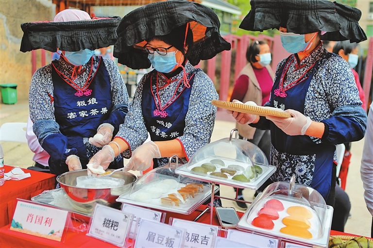 LION dances, qilin dances, paper-cutting, dough sculptures, pyrography paintings, rubbings, guqin performances, Chaozhou tea brewing and the making of Guangming sausages, Hakka snacks, Bao’an milk tea and Cantonese dessert were demonstrated at an event Friday at Datian Craft Culture Village near the centuries-old Datian Ancestral Residence in Longgang District to mark the Lantern Festival. According to the Shenzhen Museum, one of the organizers, participants of the event are all intangible cultural heritage heirs. The event was also livestreamed on various platforms. Built in 1825 by the Chen family originally from Fujian Province, Datian Ancestral Residence is a typical Hakka compound with three halls, several rooms, a pond and a grove.(Cao Zhen) |