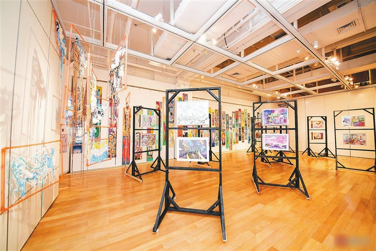 Around 200 works of art created by 198 youngsters are being exhibited at the third Xiaoyan School of Art exhibition at the Sea World Culture and Arts Center in Nanshan District. The exhibition runs through March 31. Among the young artists is a 4-year-old who brings chic shoes, envelopes and postcards; an 8-year-old who makes animated short films; and a teenager under 15 who independently finishes large installation artworks and mind-blowing architecture models. The exhibition invites visitors to move the easels as they desire, to rearrange the exhibition, which makes the event more interactive. Cheng Nian, the executive curator and director of Chao Gallery, the event organizer, explained that they are trying to push the boundaries of art galleries by putting huge oil paintings in the public space of the Culture and Arts Center. Cheng added, “This is the first time staging an offline exhibition since the breakout of the pandemic, so we want it to be more interactive with visitors who have been distanced from artworks due to the COVID-19.” “Arts plus technology” is a main concept discussed in the exhibition. Zhuo Mingda, the president of Xiaoyan School of Art, introduced a long popular strip of oil paintings featuring “human and animal,” which are co-created by several talented youngsters. “The process of creating artworks invokes reflections on technology. In an era with rapid development of technology when photo apps could instantly turn photos into sketches, painting seems to be pointless.” The oil paintings were combinations of hand-drawing images and post-processing software, which corresponds to Zhuo’s predictions on the future trend of “arts plus technology.” In addition to the commonly found “arts plus technology” works like the industrial abstract sculptures, some young artists are also inspired by traditional handicrafts. According to Ma Yan who runs the Xiaoyan Studio, a weaving artwork hung in the hall that greets visitors at the entrance is a work of creativity that combines traditional weaving skills and a mixture of materials, which is different from machine-made ones. The exhibition is also full of experimental ideas. For example, one explores the topic of “virtual reality” by drawing every frame of a recorded real-life video; another work is a hand-drawn stop-motion animation, a technique that was learned at the gallery’s summer lesson. Many young exhibitors said that video-making lessons were their first experience, since such art education is not usually delivered at their age. Wu Xiaoyan, the curator of the exhibition and founder of the Xiaoyan School of Arts, said that art education is much more than painting in front of the boards and has no boundary. “In the future, the school will keep creative and experimental,” Wu said. (Wan Mengzhen, Yang Mei) |