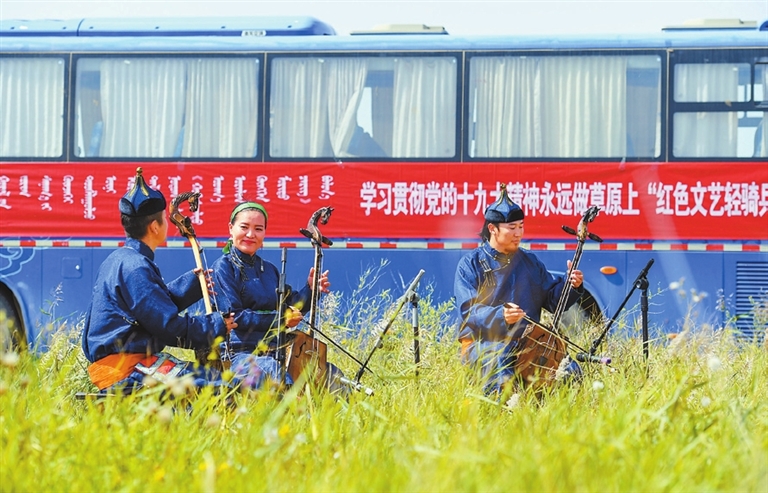 THE Wulanmuqi Art Troupe from North China’s Inner Mongolia Autonomous Region has dedicated to promote red culture and nomadic culture throughout the growth of the Communist Party of China and the People’s Republic of China. In order to enrich the herdsmen’s monotonic life with rare books, performances and movies, the art troupe entitled “Ulaan Mochir” (Wulanmuqi) in Mongolian was founded in 1957. At that time, the group only had nine members who presented a marvelous show in front of a herdsman’s yurt with only five musical instruments, two curtains and three gas lamps. Now the troupe has become a leading figure of creating thoughtful artworks and epochal characters. (Chen Siqi) |