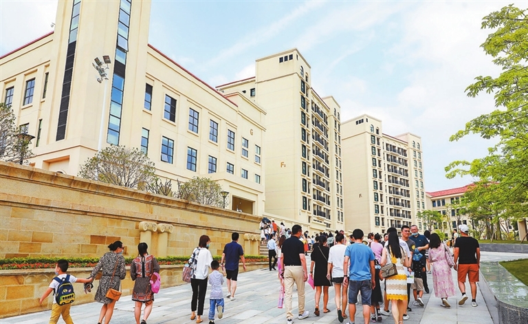 Yang Mei, Wheaty Cai yangmei_szdaily@163.com On May 5, Shenzhen Foreign Languages GBA Academy (SGA) invited students and parents to its permanent campus in Bantian, Longgang District, to explore the campus and get a feel for what it is like to study at the school. The school’s predecessor is Shenwai Longgang International School (SLIS) which was officially renamed on September 1, 2020 and moved to the new site. The brand new school is committed to distinguishing itself from common public international bilingual schools and aims to build itself into a new type of school that produces excellent talents for the future. The school also stands as a pioneer in the Guangdong-Hong Kong-Macao Greater Bay Area to innovate in the school-running system, curriculum, staff qualifications and school management. On the open day, school director Liu Jia first gave a brief historical background of the Shenzhen Foreign Languages School (Group), with which the Shenzhen Foreign Languages GBA Academy is affiliated. She also highlighted the school’s unique curriculum system that integrates national courses into its International Baccalaureate (IB) program. “Our school fully implements the national curriculum within the framework of the IB curriculum and adopts inquiry-based, interdisciplinary teaching and learning methods. Instead of simply importing the whole curriculum from abroad, we use an innovative school-based implementation approach while fully meeting the requirements from the national curriculum. The school curriculum covers four major aspects: subject curriculum, comprehensive literacy curriculum, career development curriculum and personality development curriculum,” Liu introduced. The school then showed what the classes are like on a school day via a video presentation, including Chinese class, math class, inquiry-based class, music class, art class, learning celebration, field trips, etc. High-tech devices such as iPads, laptops and smart whiteboards are used in the classes. In terms of the teaching staff structure, Liu mentioned that the teachers are all multilingual and have graduate degrees or higher, with a teacher-student ratio of 1:7.5. According to Liu, 60 percent of the teachers are Chinese and 40 percent are foreign teachers. The school consists of 14 buildings including the library, basketball gym, swimming pool, science and innovation center, labs and shared spaces with beautiful views, overlooking a large lawn. The school also uses intelligent technologies to create the largest and most resourceful environment for teaching. Luo Laijin, chief principal of the Shenzhen Foreign Languages School (Group), said “If we don’t learn from the outside world, we will lag far behind; if we lack cultural confidence, we will lose ourselves. Only by taking the path of diversified integration can we cultivate talents with a deep understanding for Chinese culture, broad global vision and innovative minds. This is the objective that we should pursue.” |