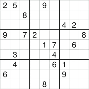Game rules: Every column, row and box (3×3 marked by heavier lines) must contain all the digits from 1 to 9.