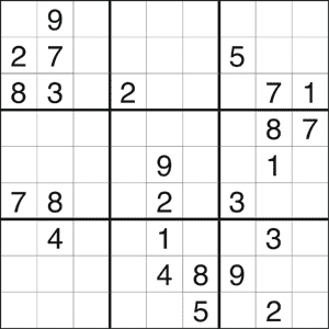 Game rules: Every column, row and box (3×3 marked by heavier lines) must contain all the digits from 1 to 9.