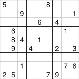 Game rules: Every column, row and box (3×3 marked by heavier lines) must contain all the digits from 1 to 9.