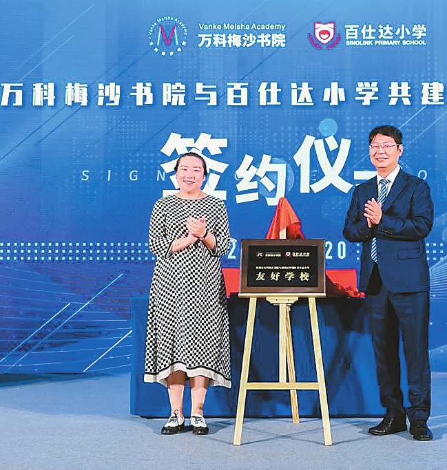 Two prestigious local schools signed a strategic cooperation agreement on Sunday, with plans to develop an integrated curriculum and coordinated Chinese and English reading projects. They will also cooperate in future student recruitment. The agreement signing ceremony between Vanke Meisha Academy and Sinolink Primary School was witnessed by representatives from both schools and local media, emceed by Wu Ningxin, a Chinese language teacher with the Meisha academy. Wang He, principal of the Meisha academy, an international school based in Yantian District, praised Sinolink for its quality and elite education efforts in the past 22 years, and said his school looks forward to future cooperation. Xiong Youping, headmaster of Sinolink, also praised the Meisha academy for its efforts in cultivating “future leaders with a global perspective.” The heads of the two schools said they share similar beliefs in cultivating the young, which has given them the motive to cooperate. Sinolink, a leading private primary school in Shenzhen, has established its reputation for quality education, especially in its sport education and reading projects. For the past 10 years, the school has implemented a learner-centered reading syllabus, helping students to raise question, do research, and write essays surrounding the books they read. Wang, previously a teacher with Shenzhen Middle School, said the Meisha academy will cooperate with Sinolink to compile a reading syllabus for junior and senior high students, and carry on the reading tradition in his school. “Both schools have taken into perspective an international education for their students in the future,” Xiong said. “However, the basis of a successful international education lies in the teaching of the Chinese language, which will help students to train their abilities in comprehension, communication and logic thinking.” Xiong said the most important part of their cooperation would be building an integrated Chinese syllabus and an evaluation system of students’ Chinese capabilities. (Debra Li) |