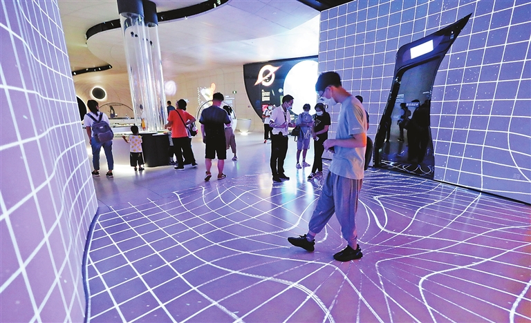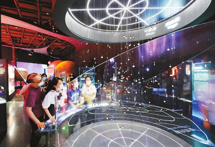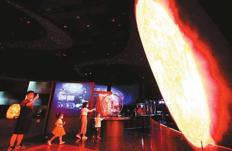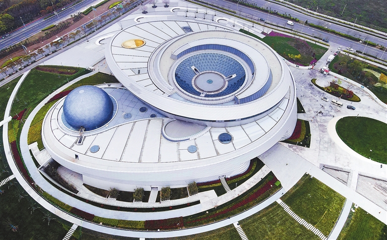 THE Shanghai Astronomy Museum, the world’s largest planetarium in terms of building scale, will open to the public Sunday. Covering an area of approximately 58,600 square meters, the museum is located in the China (Shanghai) Pilot Free Trade Zone Lingang Special Area. It is a branch of the Shanghai Science and Technology Museum. From above, the museum resembles two connected planetary orbits, with an 8K ultra-high definition spherical theater sitting on one side and an inverted spherical dome on the other. The futuristic building will feature three main exhibitions — “Home,” “Universe” and “Odyssey” — displaying astronomical knowledge, theories about the universe, and the history and current status of human exploration of space. Collections including some 70 meteorites including those from the Moon, Mars and Vesta, as well as over 120 collections of artifacts, including original works of Isaac Newton, Galileo Galilei and Johannes Kepler, will be on display. Technologies such as data visualization, augmented reality, virtual reality and biometrics have been introduced to help visitors gain knowledge of astronomy and science through interaction. Xin Ge, deputy director of the museum, said the museum will organize stargazing and sun observation activities as it has a 1-meter telescope that is the biggest among astronomy museums in China, and a 65-centimeter solar telescope.(Xinhua) |