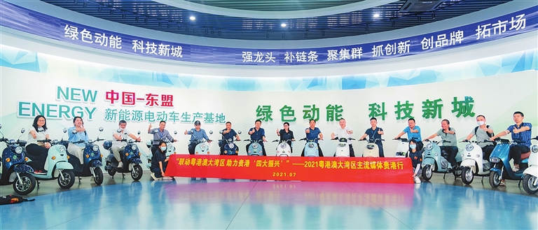 Lin Songtao 254238712@qq.com GUIGANG City in southeast Guangxi Zhuang Autonomous Region is close to the Guangdong-Hong Kong-Macao Greater Bay Area (GBA) and its humanities, transportation and industrial infrastructures are also similar to those of the GBA. At present, the city is accelerating its cooperation with the GBA and striving to be a core port city with strategic emerging industries in the Pearl River-West River Economic Belt. Last week, reporters from 15 GBA media organizations went on a three-day tour of Guigang. Organizations, including Shenzhen Special Zone Daily, Shenzhen Evening News, Shenzhen Economic Daily, Shenzhen Daily, Guangdong Radio and Television and Macao Commercial Post, participated in the “Linking GBA With Guigang” event which was co-organized by Hong Kong Commercial Daily from the Shenzhen Press Group and the Publicity Department of the CPC Guigang Municipal Committee. From an apparel fashion area to a new energy vehicle production base, from the heart-shaking Datengxia Water Conservancy to an eye-catching lotus flower festival, reporters were impressed by Guigang’s industrial development in various locations as well as its rich culture. |