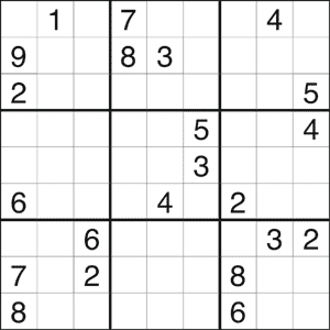 Game rules: Every column, row and box (3×3 marked by heavier lines) must contain all the digits from 1 to 9.