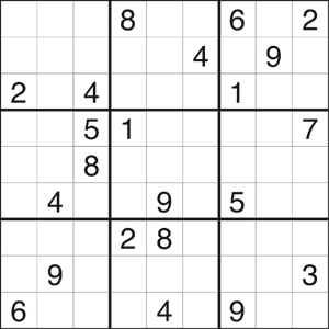 Game rules: Every column, row and box (3×3 marked by heavier lines) must contain all the digits from 1 to 9.