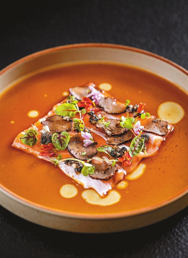 KENETH KIM, the chef at the Kumoi restaurant in Four Seasons Hotel Guangzhou, is presenting his debut menu to gourmets, featuring a gastronomic collection of rigorous Kaiseki craftsmanship and modern fusion cuisine. Born in Seoul, South Korea, Kim has always had a deep appreciation of Japanese food. Tokyo was the first destination of his culinary journey, where he had an opportunity to learn traditional Kaiseki cuisine. Following many years of rigorous training in Kaiseki cuisine, Kim is adamant that unrelenting attention to detail is fundamental when preparing Japanese cuisine. Kim then moved from Japan to London, the Middle East, and finally to China in late 2020. He is excited to launch his new menu at Kumoi, featuring a strong Kaiseki influence combined with elements and techniques from diverse cultures. Pumpkin chawanmushi is a classic appetizer with a modern twist. The mini pumpkin assumes the role of a tea cup. Its ample golden shade is just right for autumn, a season of harvest. The pumpkin’s natural sweet taste compliments the savory egg custard elevated by a lobster consommé. The chef dresses up this dish with a touch of spicy seafood paste, which gives this gentle entrée a distinctive Cantonese character. King bull wagyu beef hoba-yaki, another signature dish, is inspired by the rustic and natural cooking methods practiced in the mountains of central Japan. The locals use a dried “hoba,” a kind of dried leaf, as a vessel for cooking meat in white miso. A medium marbled beef of domestic wagyu is selected for the grill and accompanied by a fruity pomelo miso dip to neutralize its rich flavor. Salmon carpaccio, black truffle and ponzu sauce; and truffle foie gras roll, barbecued eel, chives, sweet soy and truffle salsa, are two dishes with the chef’s unmistakable fusion style. The ponzu dressing served with the salmon carpacciois made with Japanese citrus vinegar and bears a strong resemblance to ceviche, a household favorite in South America. The tantalizing combination of the salmon carpaccio and the ponzu dressing, accented with the truffles, is memorable. For the truffle foie gras roll the chef deep-fries the sushi roll with a tempura batter, to offer an extra layer of texture. The sweet soy and truffle salsa create a dynamic flavor combination. (Tang Li) |