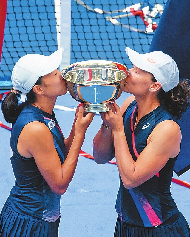 CHINA’S Zhang Shuai and Samantha Stosur of Australia won the U.S. Open women’s doubles title by defeating American teen pair Coco Gauff and Catherine McNally 6-3, 3-6, 6-3 Sunday. The Chinese and Aussie combination showed their tacit understanding and strength again as the veteran pair saved two break points to hold for 4-3 in the crucial third set and finally won the rest of the game. “For sure, it was not easy [to choose to play the U.S. Open instead]. Never easy,” the 32-year-old Zhang said. “I am really proud that I keep playing with Sam. Sam always takes care of me. We are so happy we won. This means so much.” The championship also excited the former U.S. Open women’s singles champion Stosur. “It’s just a phenomenal feeling to have this trophy again, 16 years later,” the 37-year-old said. “Winning the singles here, I’ve got so many amazing memories here playing in New York. I love coming back here, I love the courts, I love the atmosphere. Obviously a very special place for me,” she said.(Xinhua) |