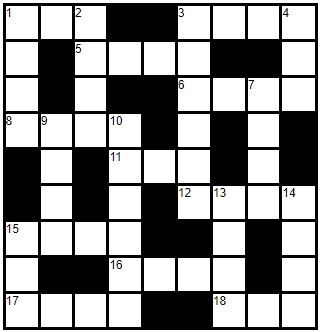 Across 1. Deep hole 3. Zits 5. Said at end of prayer 6. Small lizard 8. Vomit 11. Negative vote 12. Location 15. Equipment 16. Catch breath 17. More than a few 18. Utter words Down 1. Device for moving fluids 2. Large military vehicle 3. Bothers 4. Consume food 7. Desire 9. Egg on 10. Vigor 13. Little devils 14. Feel jealous 15. Chewing treat |