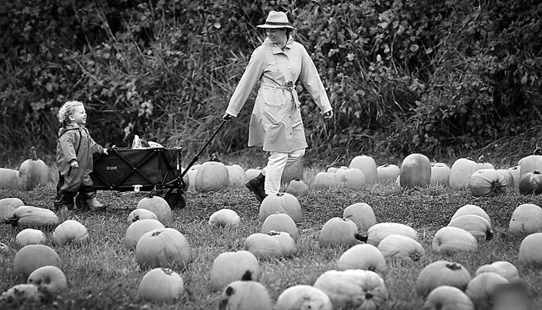 People are seen during a pumpkin patch activity at a farm in Richmond, British Columbia, Canada, on Sunday. People participated in the activity to mark the arrival of the harvest season and celebrate the upcoming Halloween. Xinhua