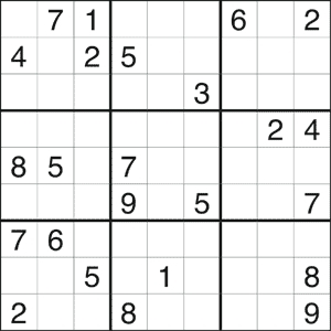 Game rules: Every column, row and box (3×3 marked by heavier lines) must contain all the digits from 1 to 9.